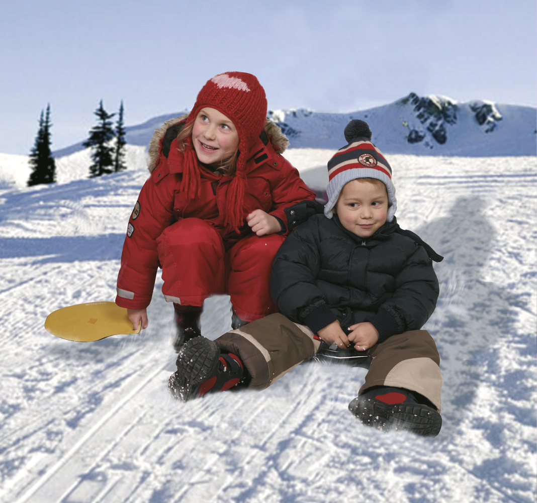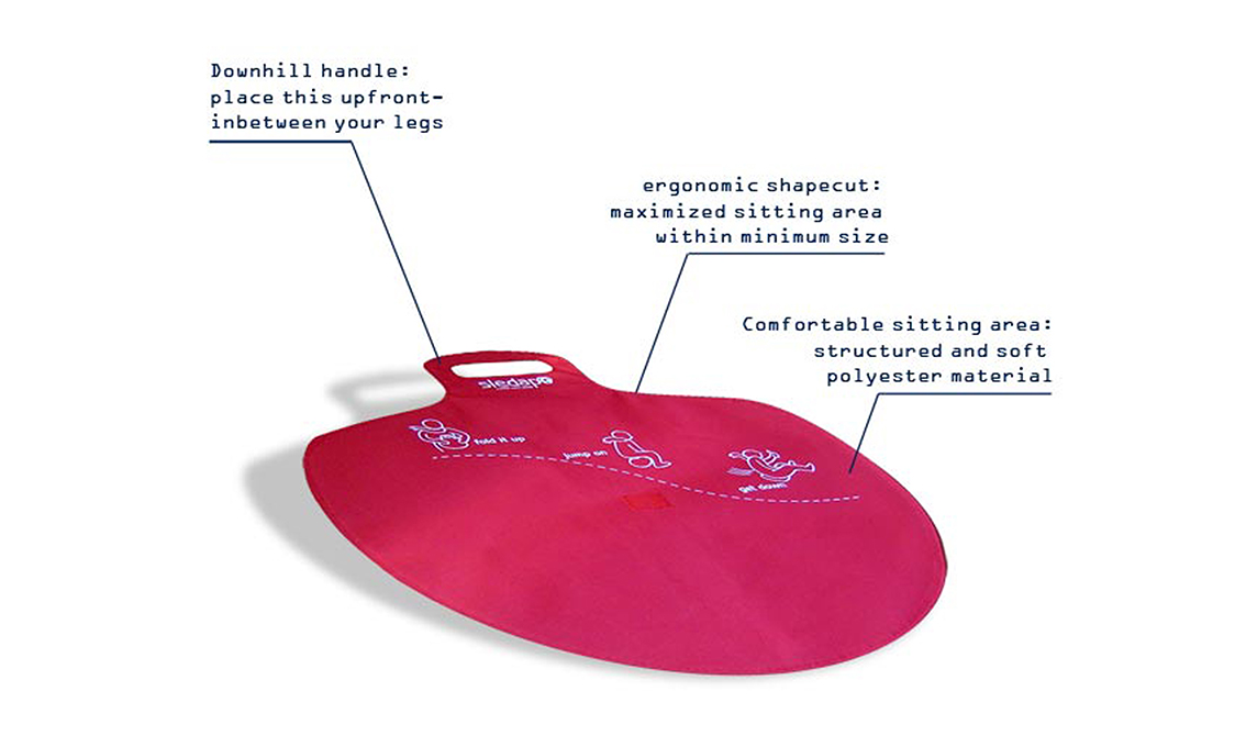 one two three – GO! Ein Micro-Schneeteller für Jeden & Jederzeit. Aufklappen. Aufsitzen. Ab gehts! Sledapo = perfektes Merchandising Gimmick
